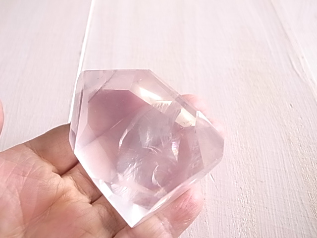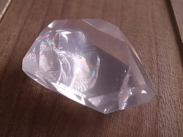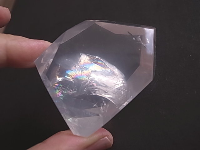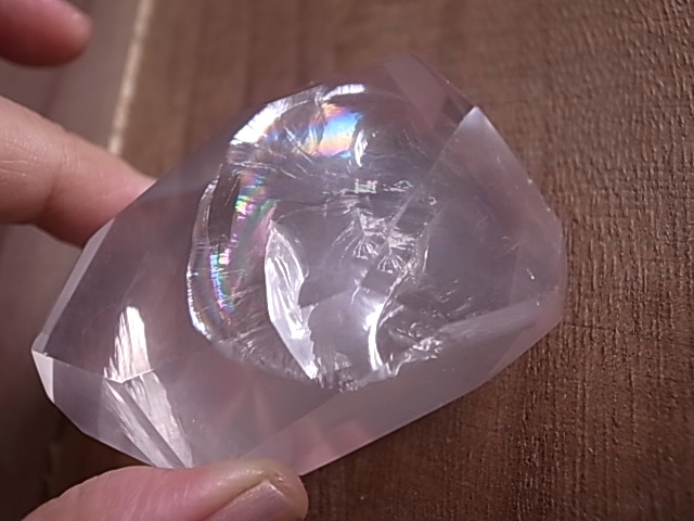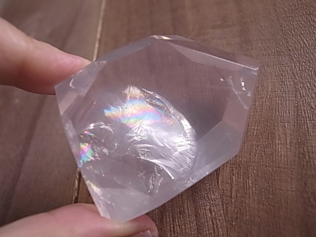 七色の虹の光が美しい、アイリスローズクォーツ、レインボーローズクォーツです。ほのかなピンクにレインボーの色彩が、鮮やかに浮かび上がります。