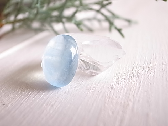 アクアマリンという名はラテン語で"水"を意味する『アクア』、"海"を意味する『マリン』から由来しています。その名の通り、爽やかで清々しいストーンです。