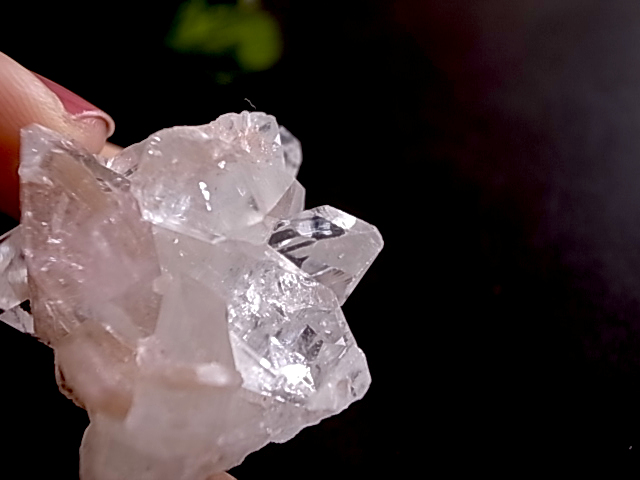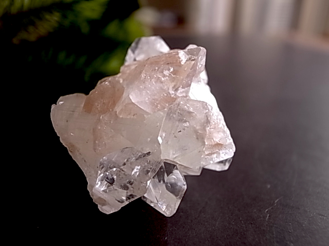 透明感ある結晶がキラキラと美しい、アポフィライトの原石です。小さいですが、ぐるりと結晶で覆われた高品質なアポフィライトです。ピラミッド状の結晶の煌きは、アポフィライトならでは。