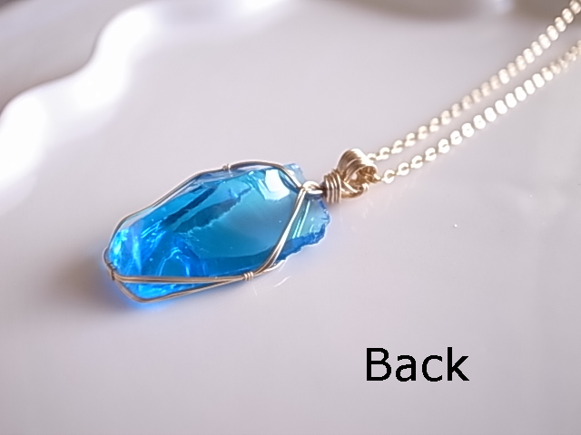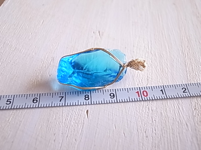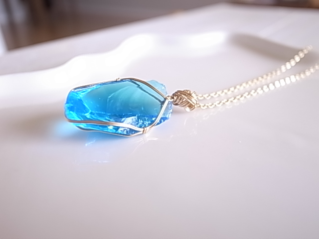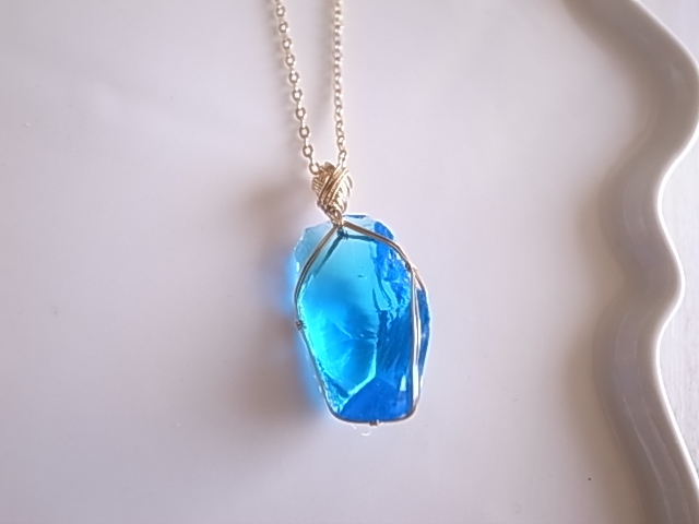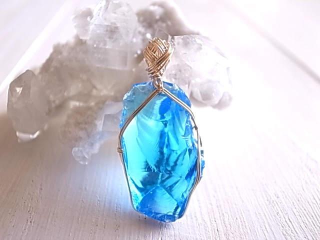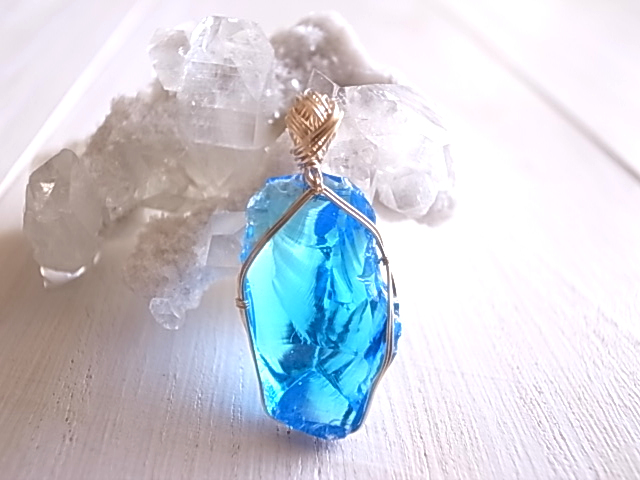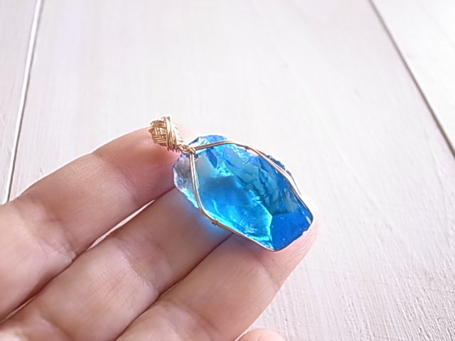鮮やかなブルーのアンダラクリスタル・エレクトリックブルーのワイヤーペンダントトップです。