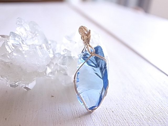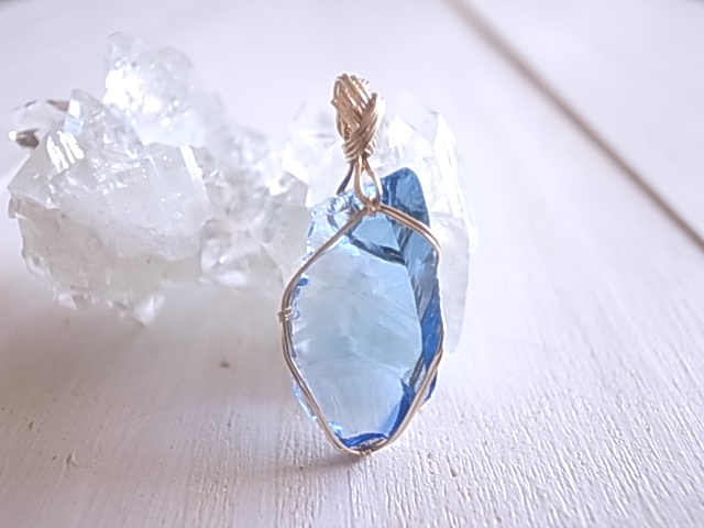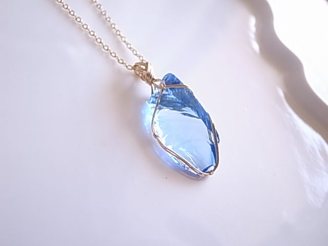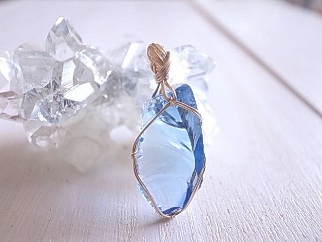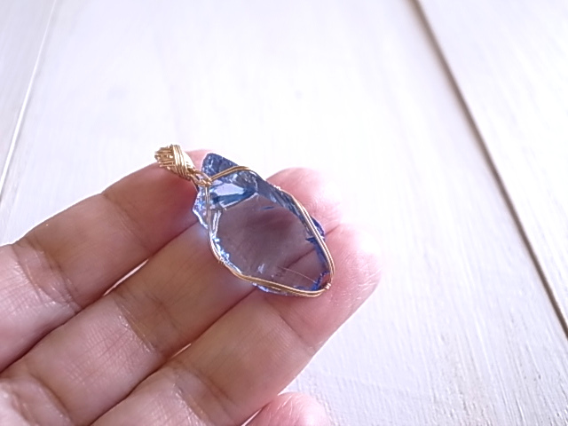 神秘的なロイヤルブルーの輝き、アンダラクリスタル・エレスチャルサファイアのワイヤーペンダントトップです。アメリカ・シェラネバダ産のアンダラクリスタルです。