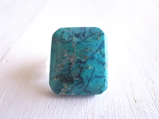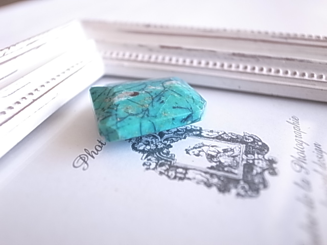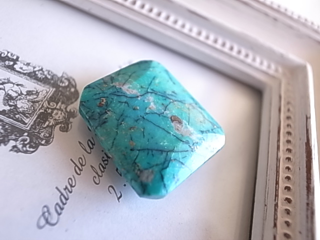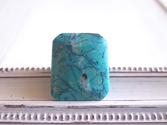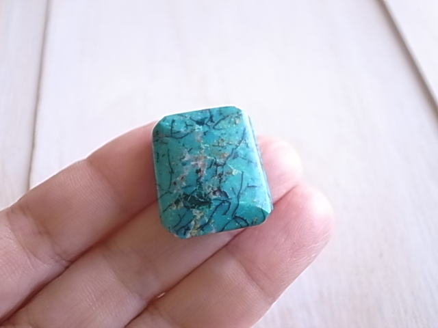 珍しいスクエアカットのペルー産クリソコラです。ターコイズブルーにシダ模様のような不思議な情景が、とても魅力的です。
