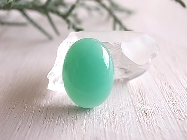 鮮やかでアップルグリーンのクリソプレーズルースです。この艶やかで明るいカラーが、魅力のストーンです。