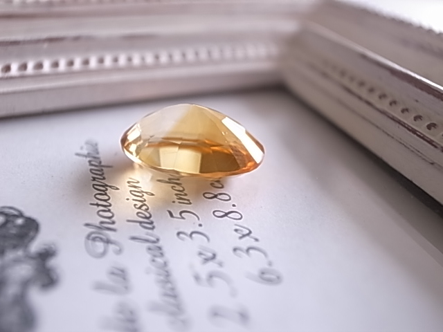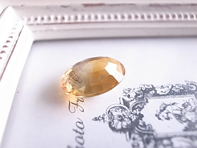 明るいイエローのエネルギー、シトリンのカット入りです。裏側は膨らみがあります。