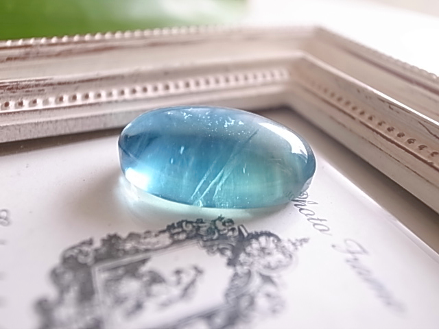 艶やかなブルーラグーンの輝、美しいフローライトルースです。光の当たり方で、エメラルドグリーンからブルー、そしてパープルへと表情が変わり、とても神秘的な輝きを放つストーンです。