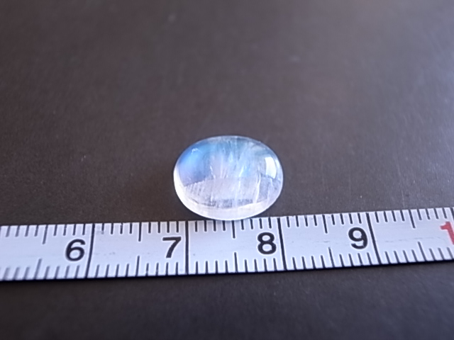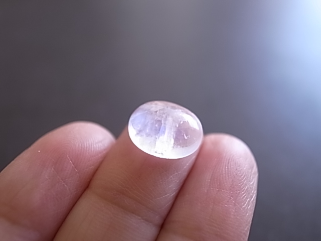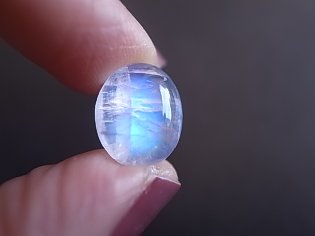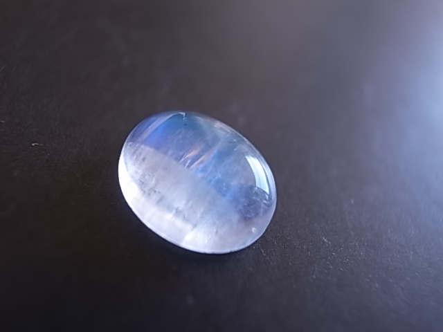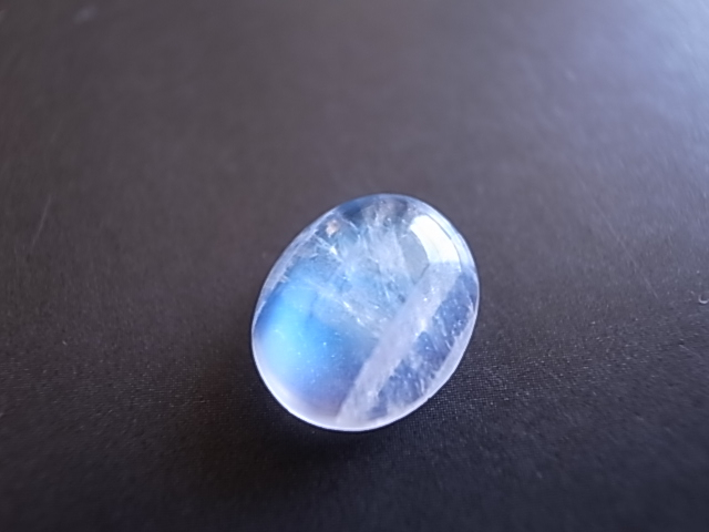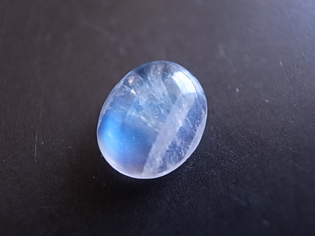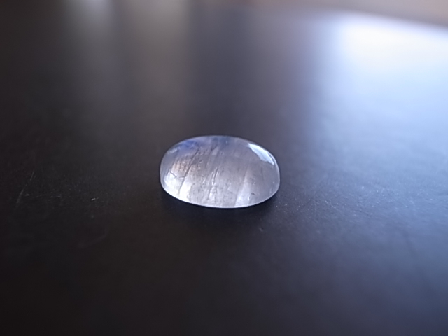 雲の中にブルーシラーが輝く、幻想的なレインボームーンストーンです。小さめですが、とても綺麗なブルーの輝きです。