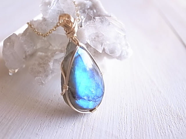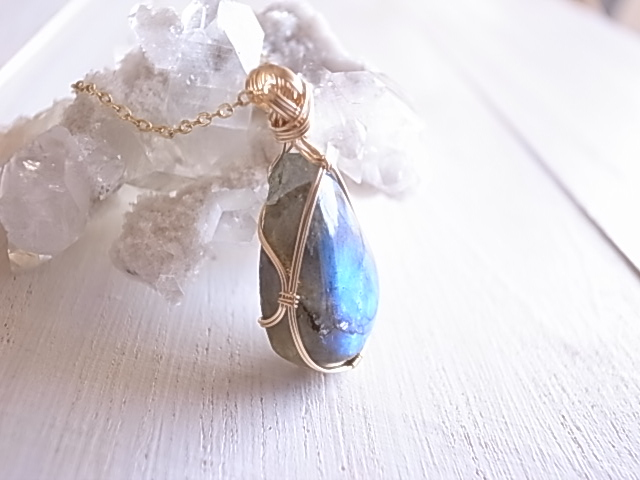 ラブラドライト ペンダントトップ ワイヤーペンダント マダガスカル産