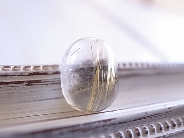 ゴールドの針が美しい、ブラジル産ルチルクオーツルースです。
