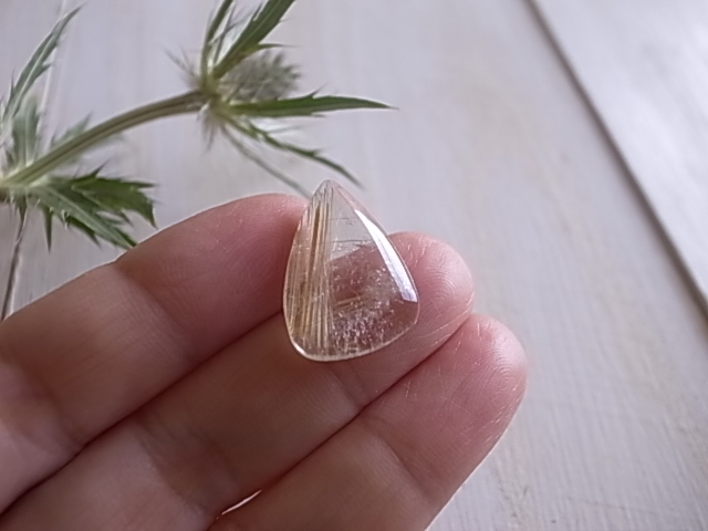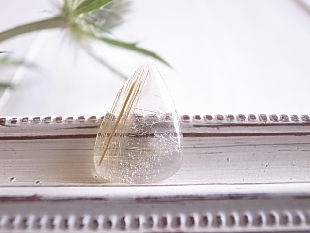 ゴールドの針が美しい、ブラジル産ルチルクオーツルースです。