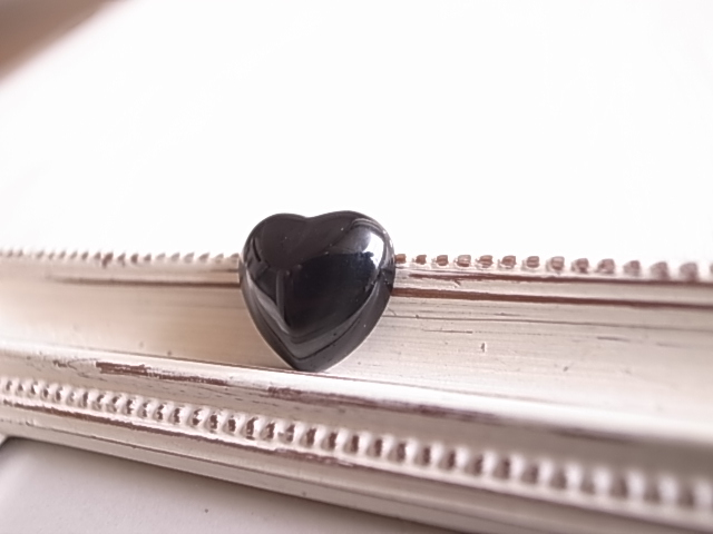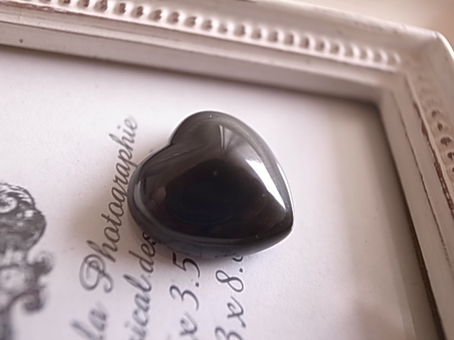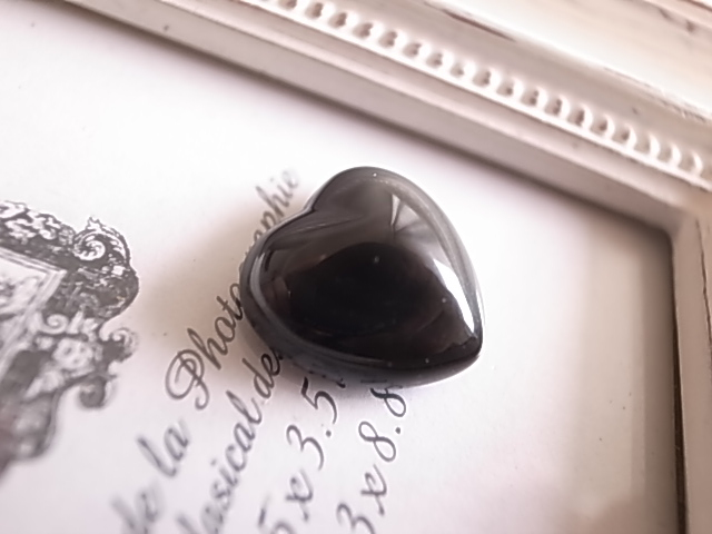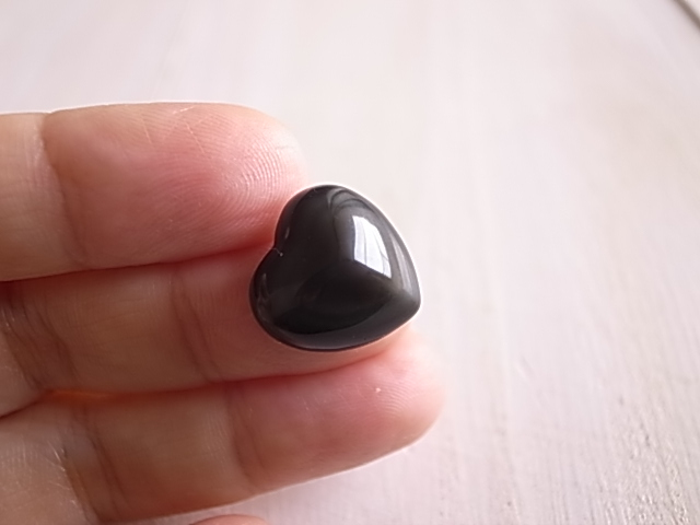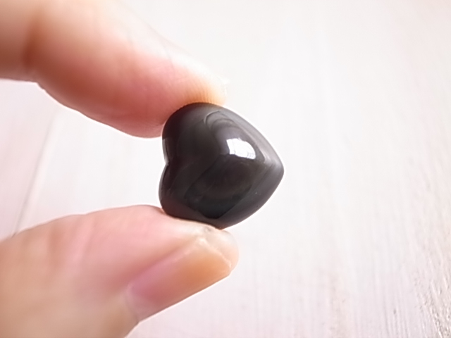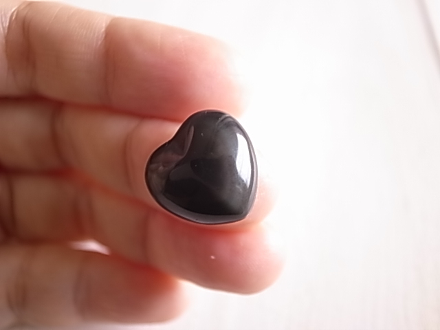 可愛らしいハートのレインボーオブシディアンです。漆黒の中にハートのレインボーが神秘的に浮かび上がります。