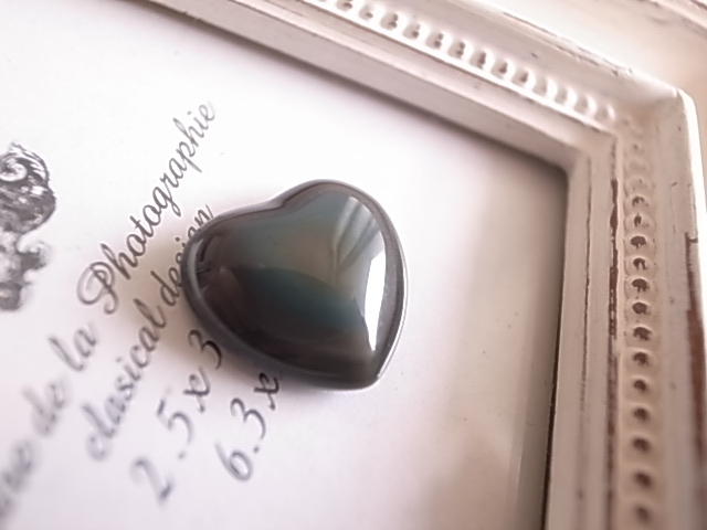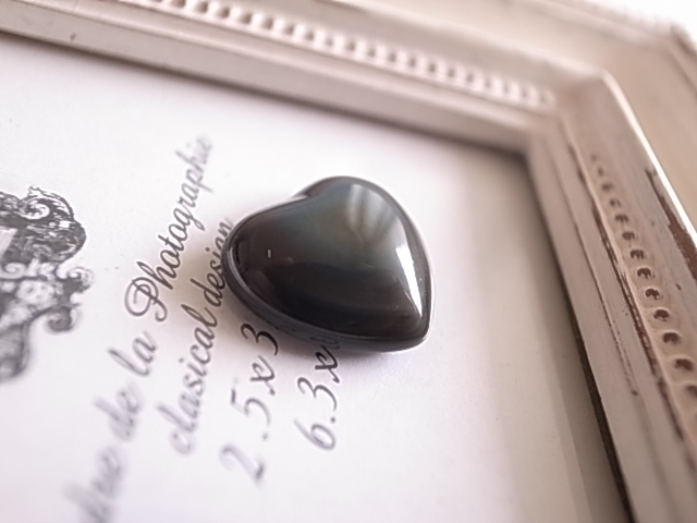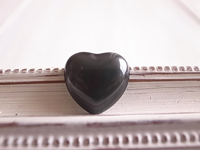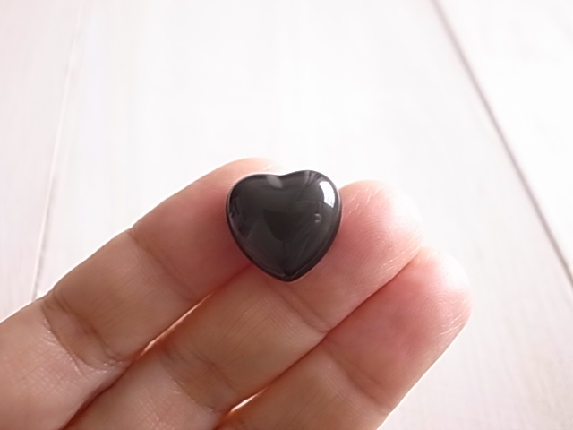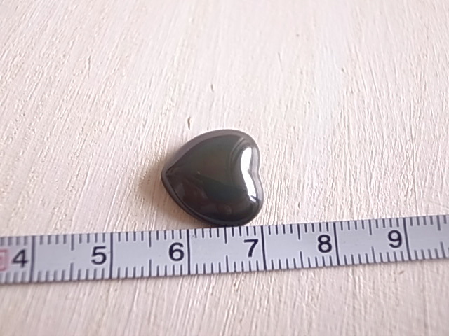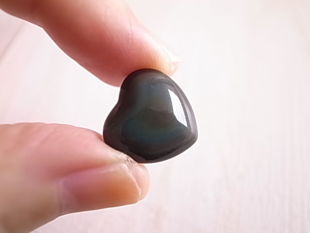 可愛らしいハートのレインボーオブシディアンです。漆黒の中にハートのレインボーが神秘的に浮かび上がります。