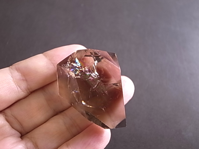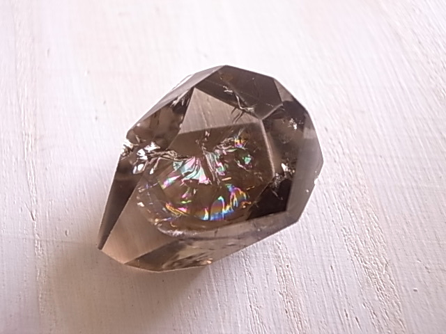 グランディングに最も適した石、淡いブラウンに浮かび上がる七色の光、レインボースモーキークォーツ、アイリススモーキークォーツです。
