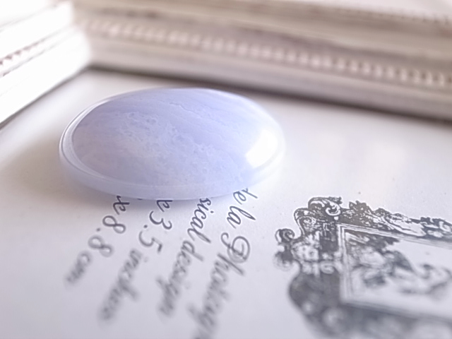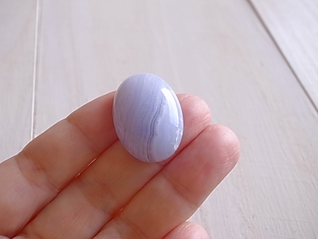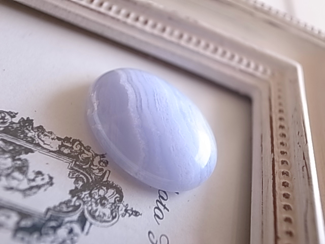 優しいブルーの縞模様、ブルーレースアゲートです。どこか儚げなブルーのレース模様が魅力のストーンです。