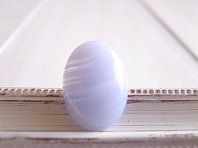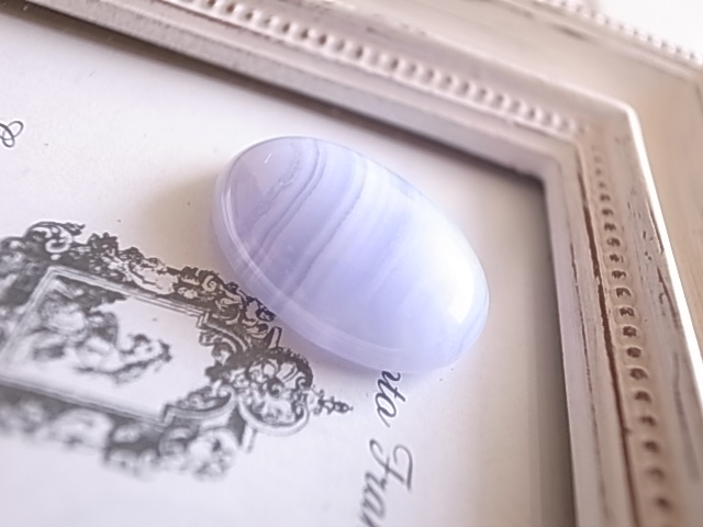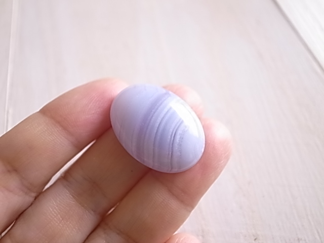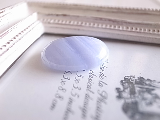 優しいブルーの縞模様、ブルーレースアゲートです。どこか儚げなブルーのレース模様が魅力のストーンです。