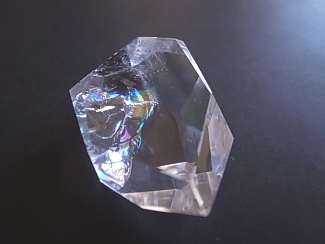 透明感があるクリスタルに、七色の光線がくっきりと煌き、正にレインボーの輝きを閉じ込めています。