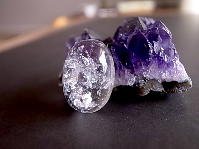アイリスクォーツは、水晶内にクラック(ひび割れ)を持ち、そのクラック面が光を反射する際に虹色の輝きを放つ水晶のことを言います。