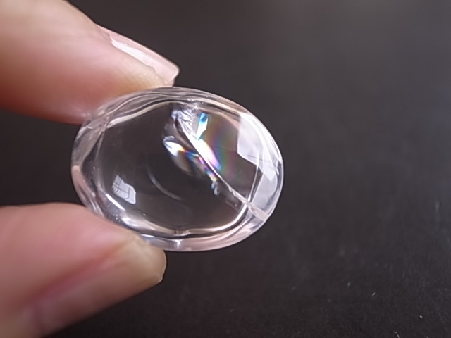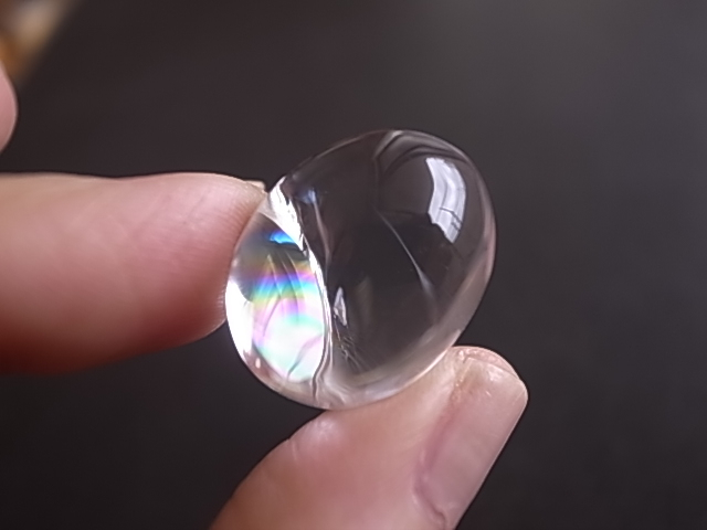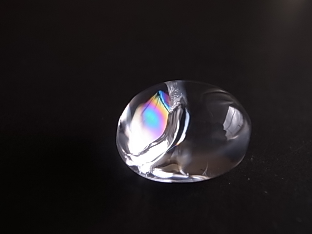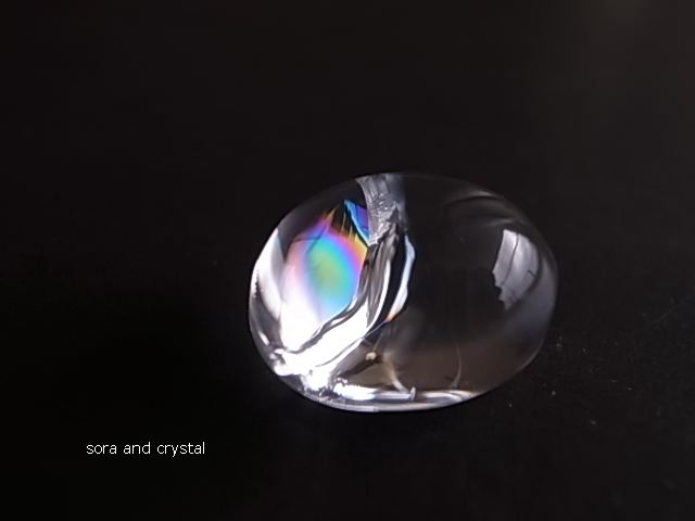 クリアなクリスタルに、虹の光がキラキラ輝いています。