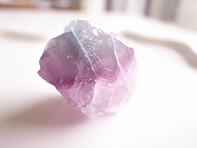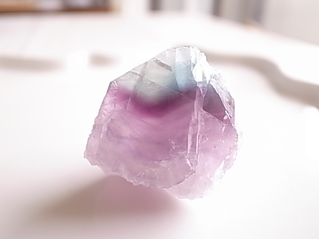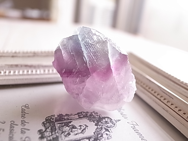 可愛らしい石の欠片、フローライトです。パープルから淡いグリーンの色彩が、とても綺麗なフローライト原石です。