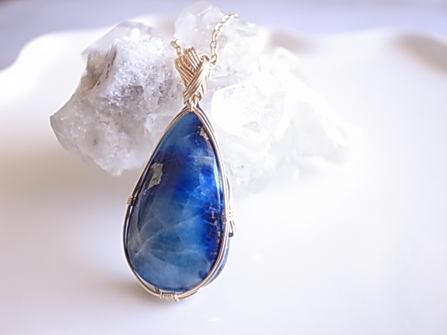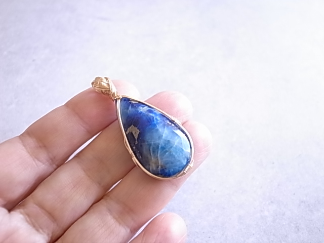 鮮やかなロイヤルブルー、アフガニスタン産マトリクス ラズライトのペンダントトップです。惹きこまれそうなブルーのコントラストが、絵画のようで芸術的なストーンをワイヤーでペンダントにしてみました。この様な高品質なラズライトは、とても貴重です。